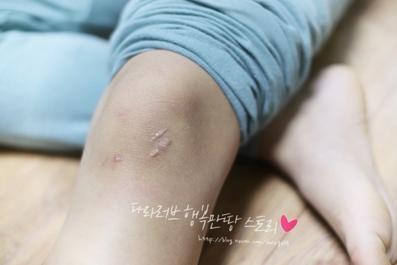 하지만 아이의 피부는 아주 잘 재생되었고, 여름에 상처가 났던 다리도 지금은 많이 좋아졌지만, 아직도 흉터처럼 보이는 곳이 있습니다.
